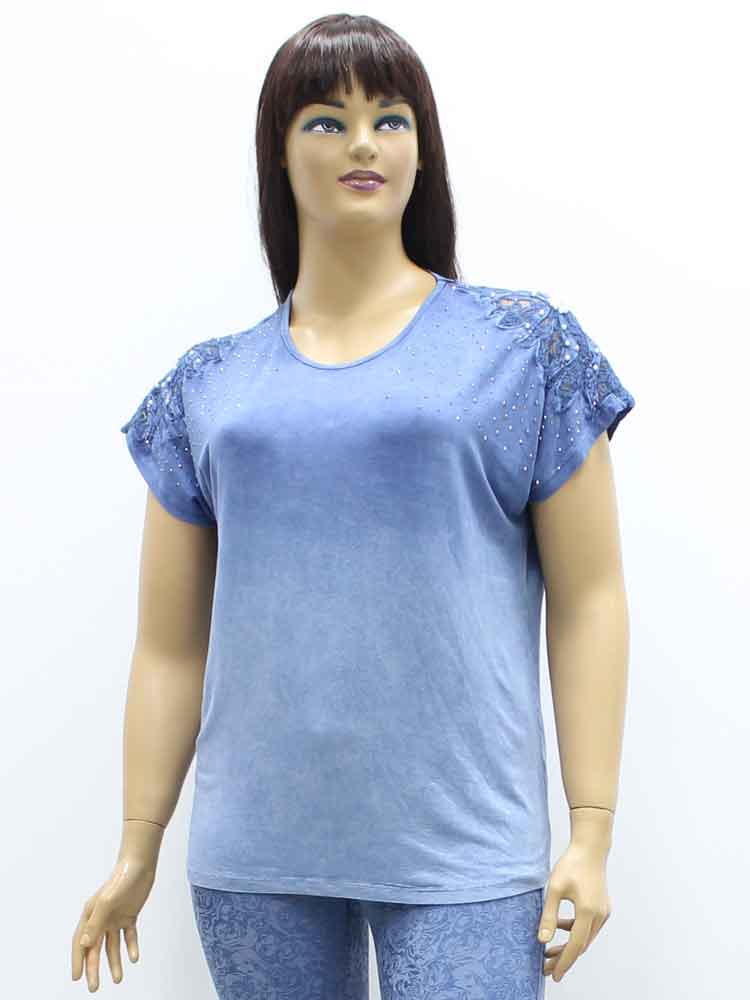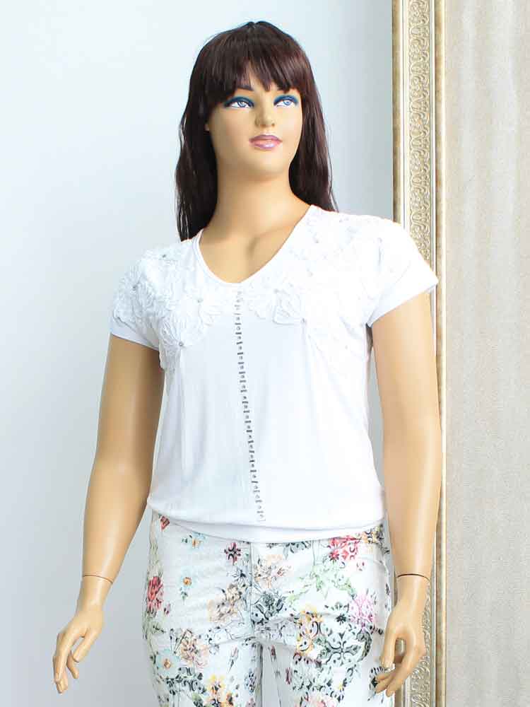 Код - 261101. Футболка женская из вареного хлопка с кружевной отделкой и аппликацией