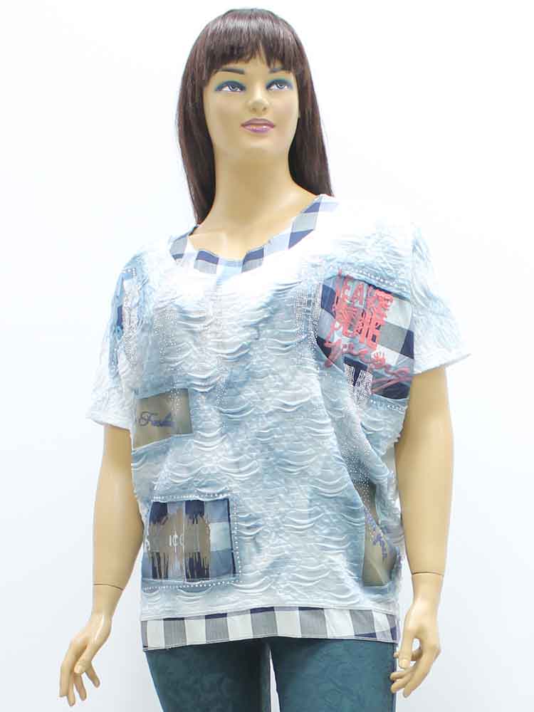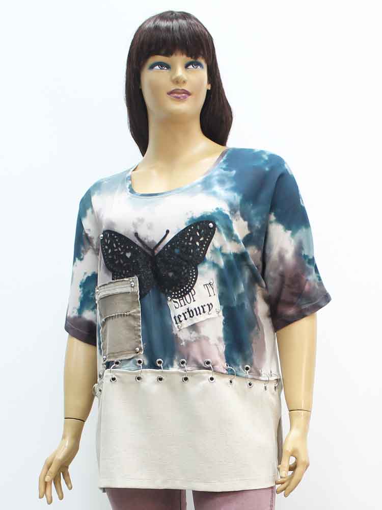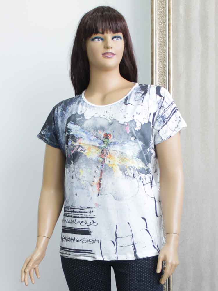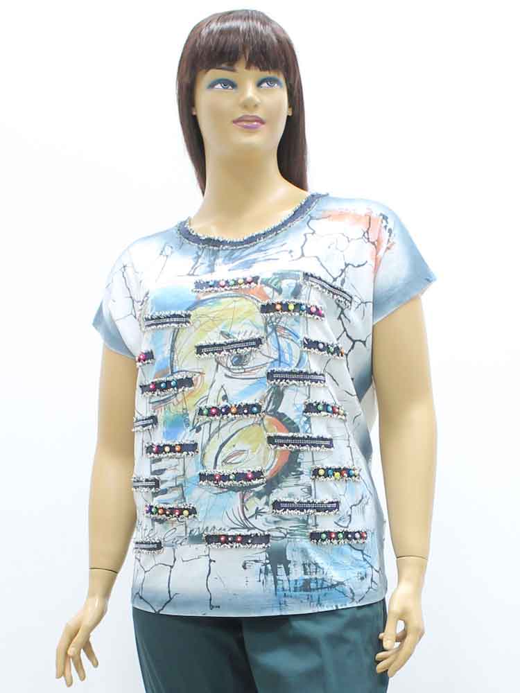 Код - 262421. Футболка женская из вискозы с декоративным принтом
