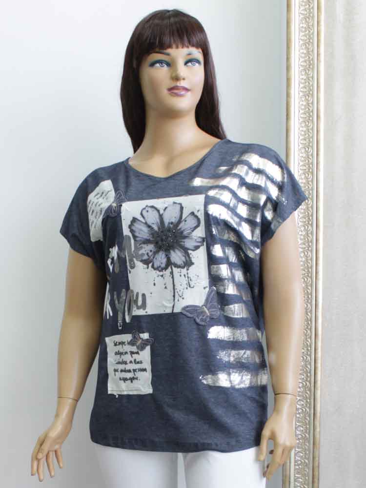 Код - 260302. Футболка женская из вискозы с декоративным принтом