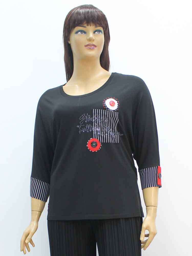 Код - 261102. Футболка женская из вискозы декоративным принтом на манжете
