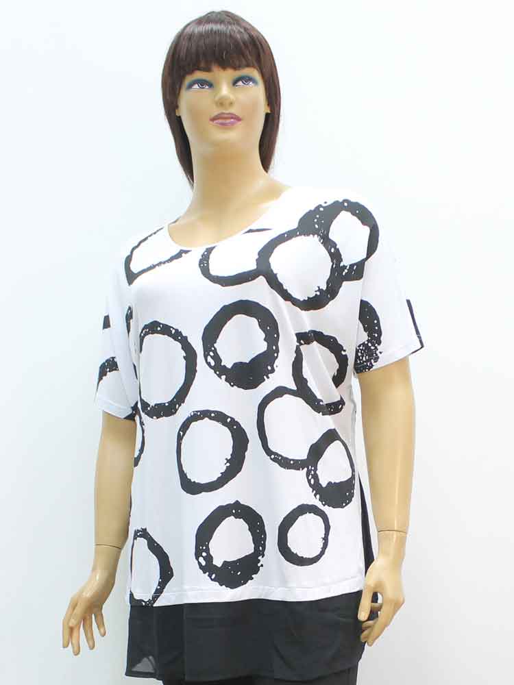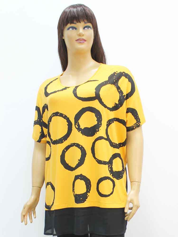 Код - 262406. Футболка женская из вискозы комбинированная с шифоном и декоративным принтом