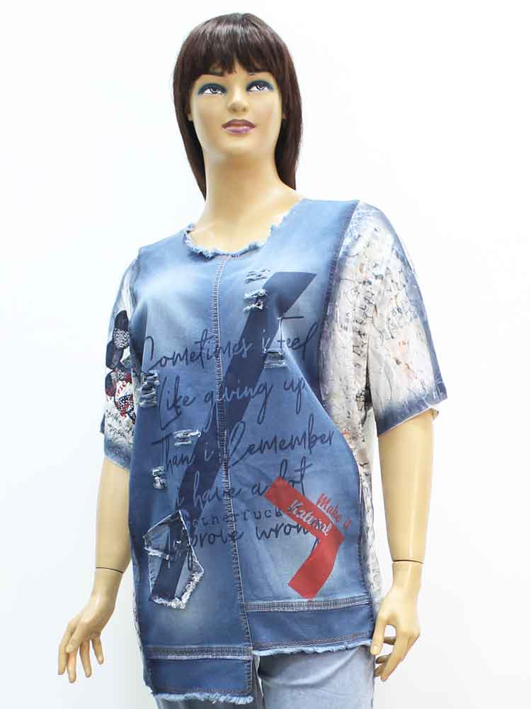 Код - 261817. Футболка женская комбинированная джинсовая с декоративным принтом