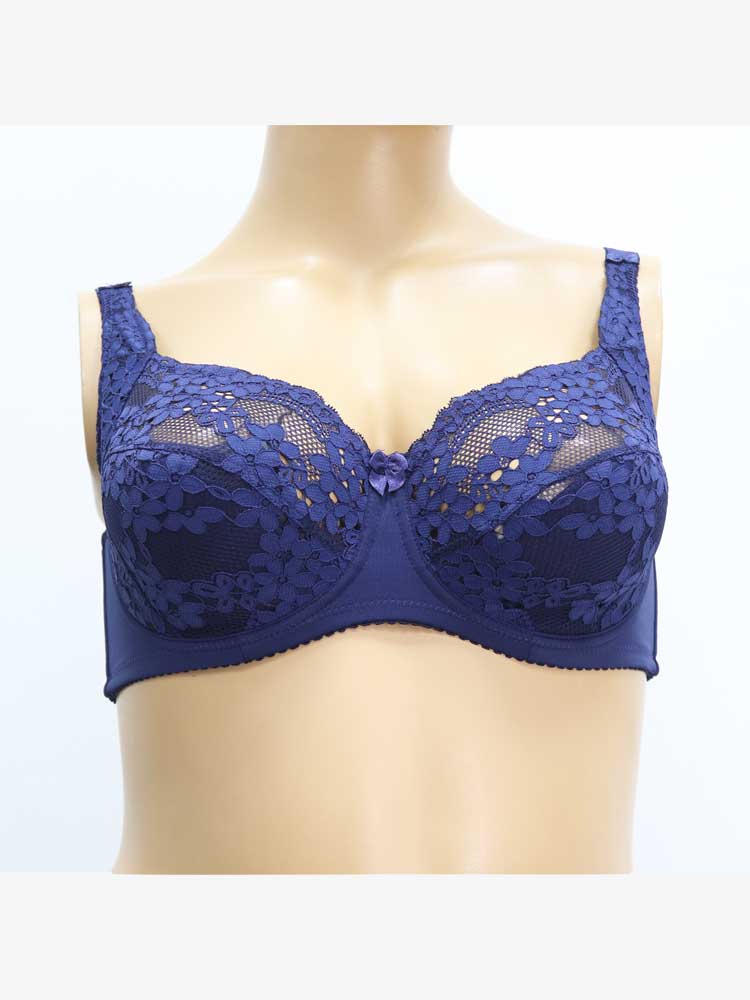 Добрый день! Бюстгальтер Bella Donna в размере 95D есть в наличии в синем цвете – модель код 160104. Боковая часть пояса у основания чашечки 11 см, у основания бретельки 10 см, застежка на 2 крючка. Чашка с лёгким уплотнителем и прошита по боку.