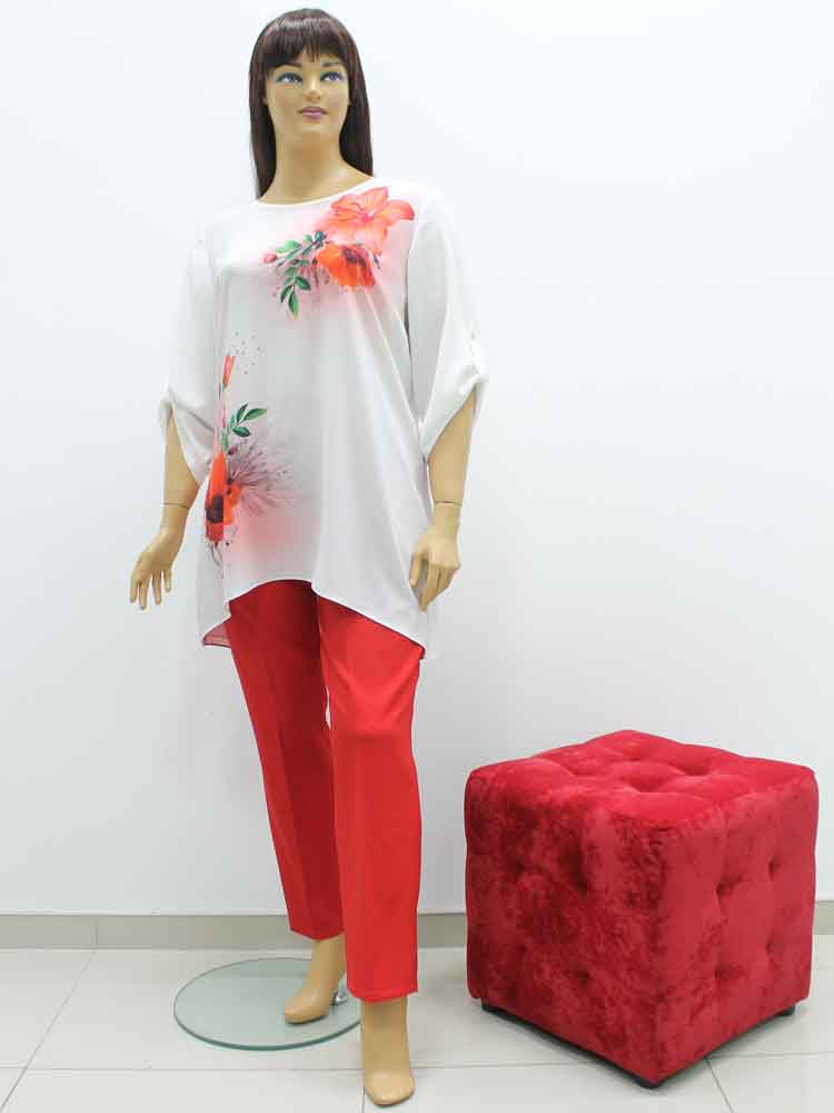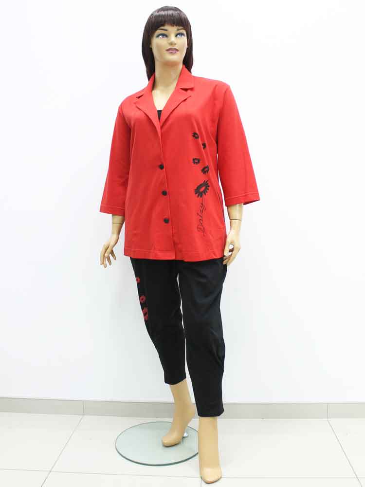 Брючный костюм код 321102 стоит - 2800 грн. Размеры есть 58 и 62 украинские. Более яркого красного цвета есть еще размеры 56 и 60.