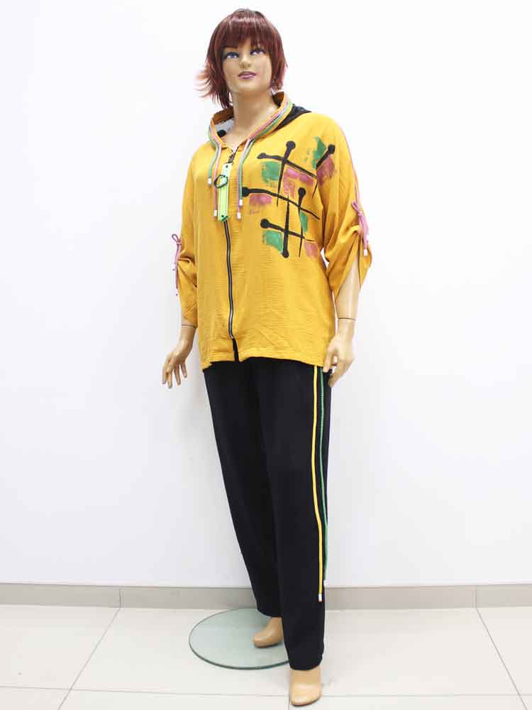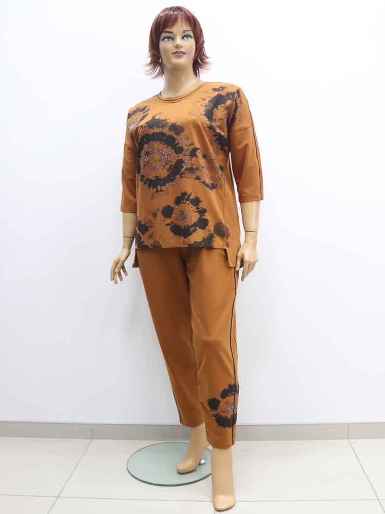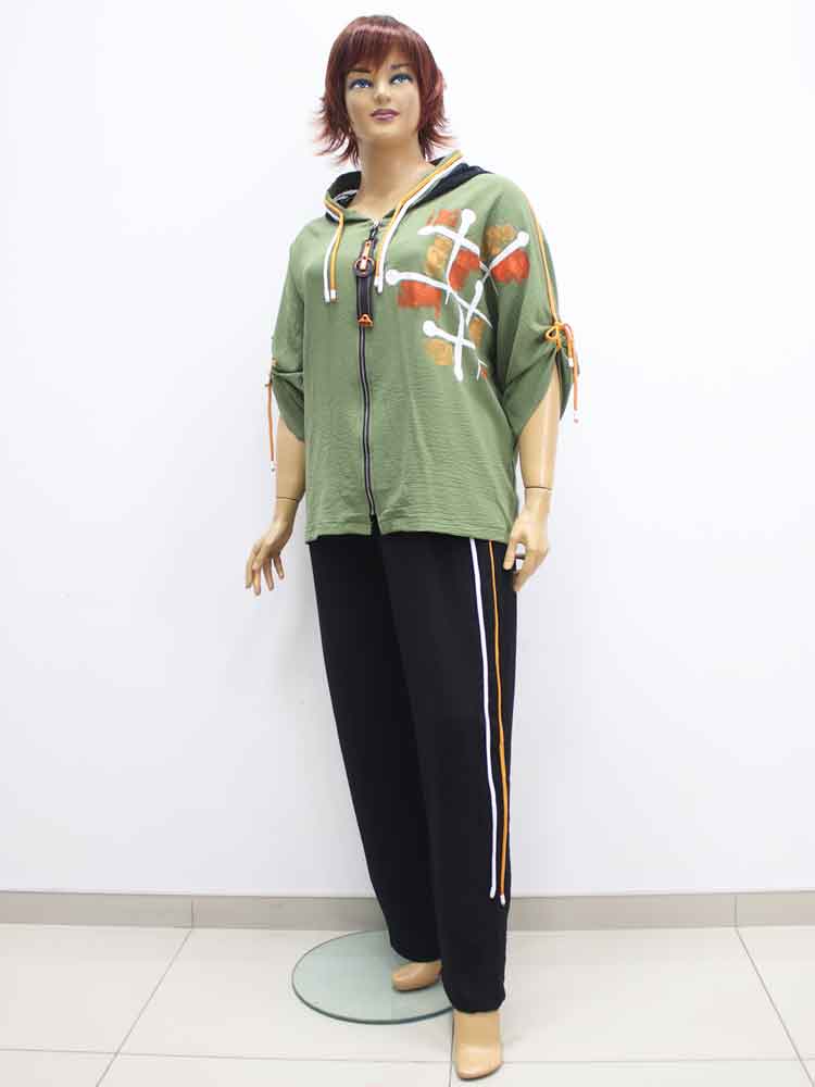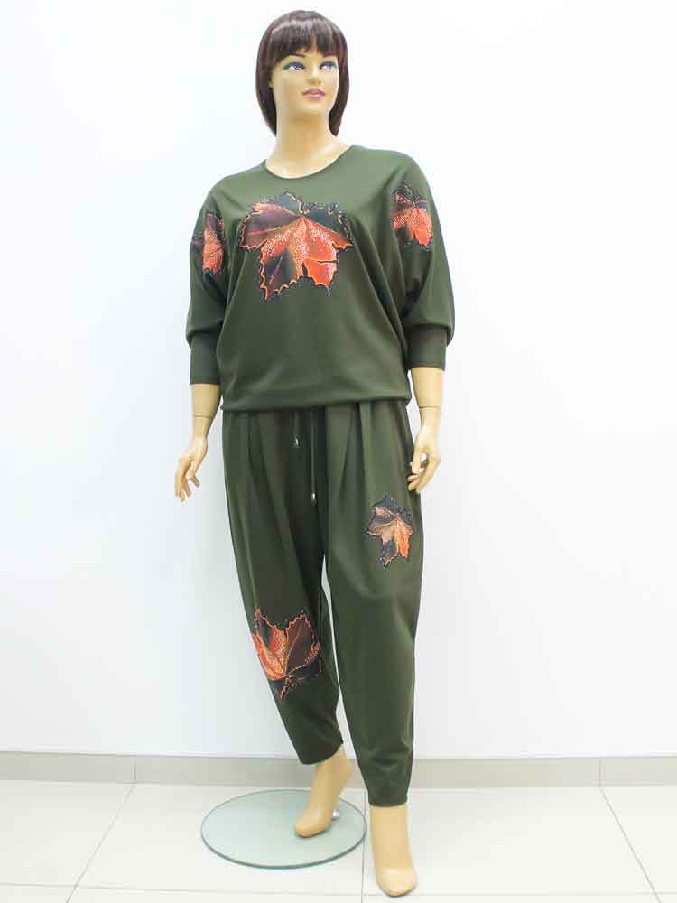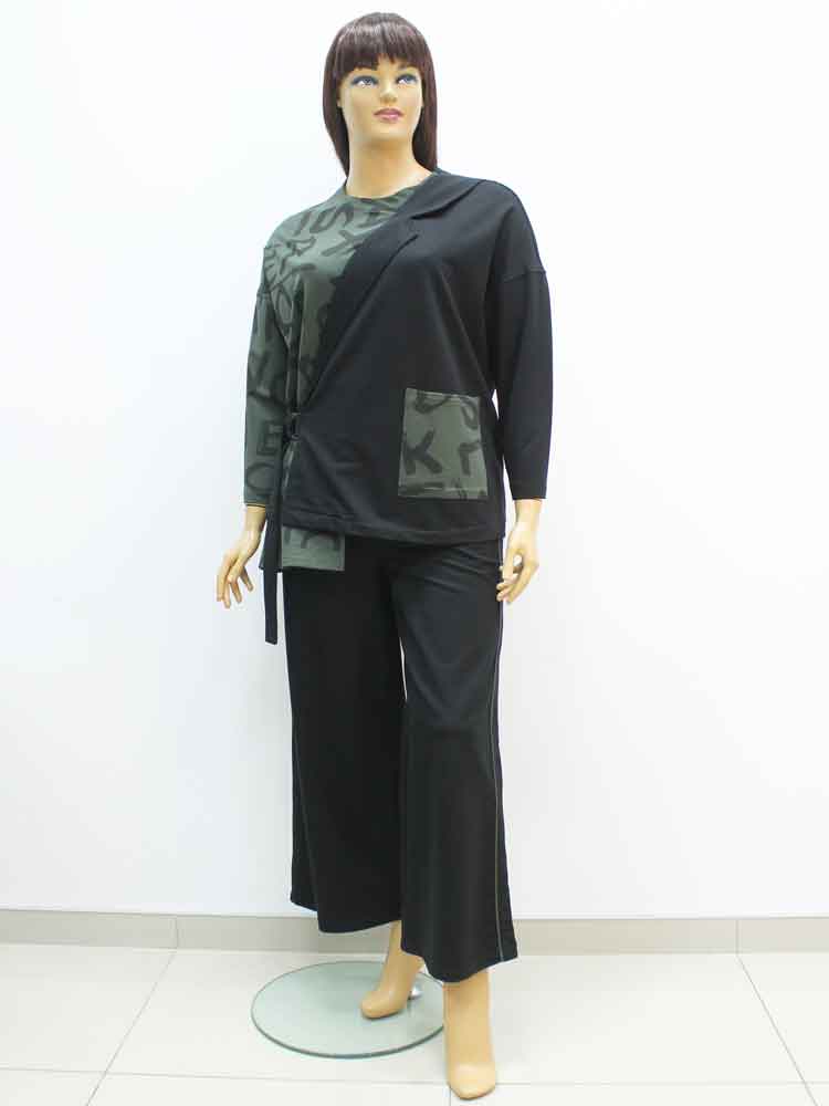Здравствуйте. Костюм 321702 стоит - 2700 грн. В наличии один размер с объёмом груди 132 см и объёмом бёдер 122-128 см. Брюки на резинке и тянутся до 130 см. Замеры приблизительные потому, что ткань эластичная плиссированная.