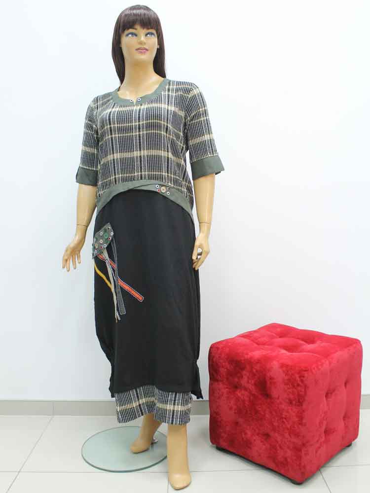 Платье из хлопка комбинированное с аппликацией большого размера. Магазин «Пышная Дама», Харьков.