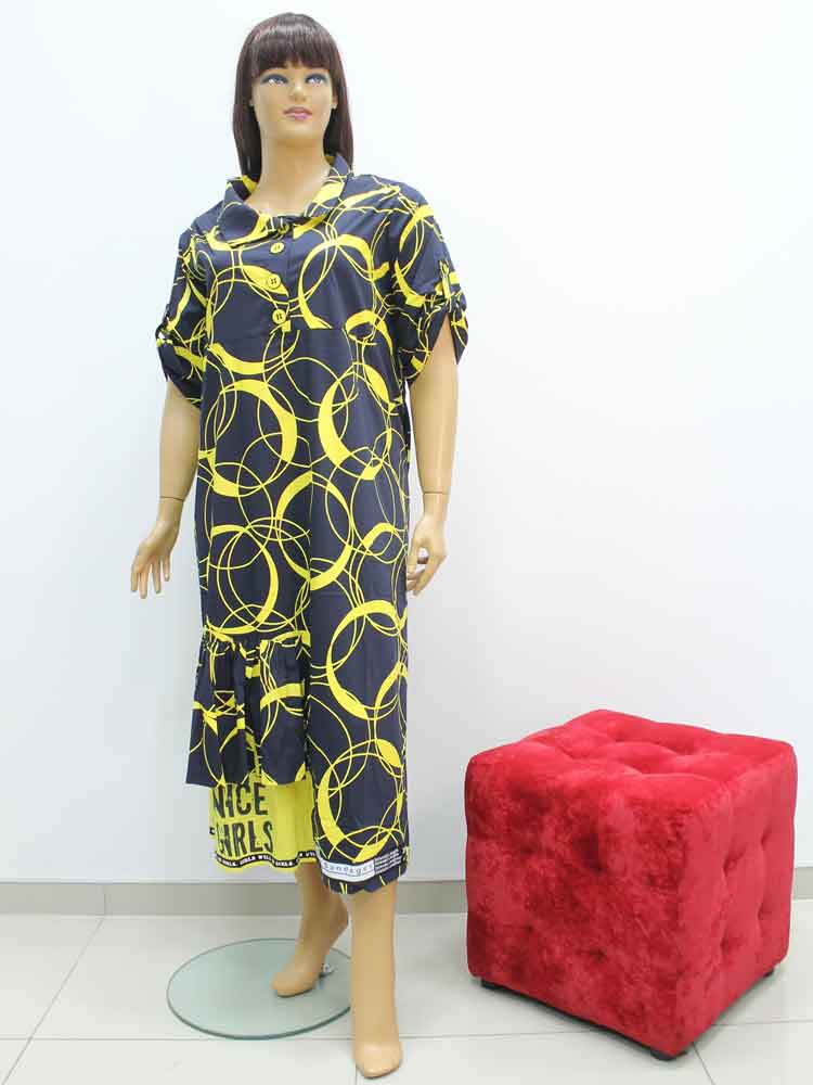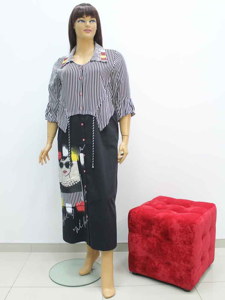 Платье стрейчевое из хлопка с декоративным принтом и аппликацией большого размера. Магазин «Пышная Дама», Харьков.