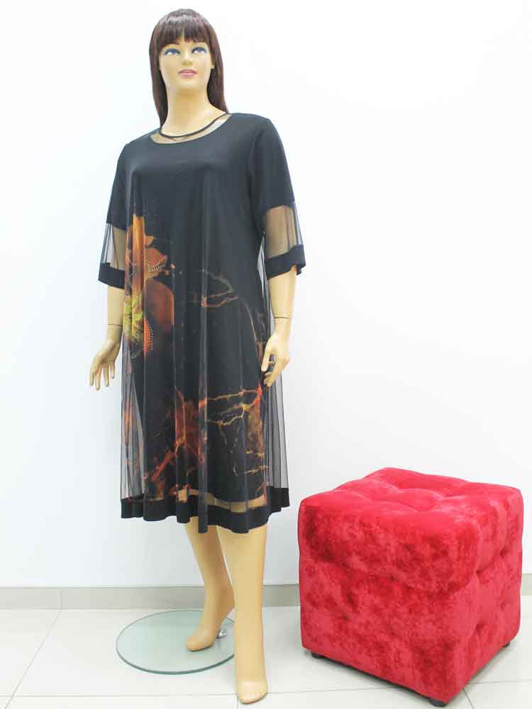 Платье трикотажное комбинированное с сеткой  большого размера, 2022. Магазин «Пышная Дама», Харьков.
