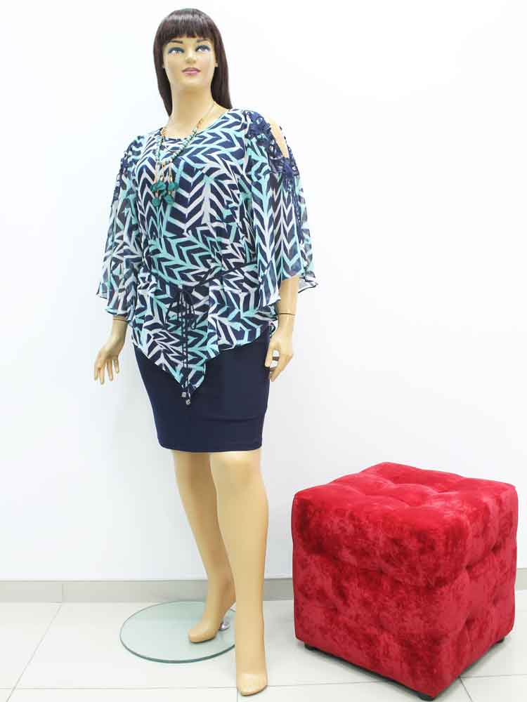 Платье двухслойное из трикотажа (масло) с накидкой из шифона большого размера, 2023. Магазин «Пышная Дама», Харьков.