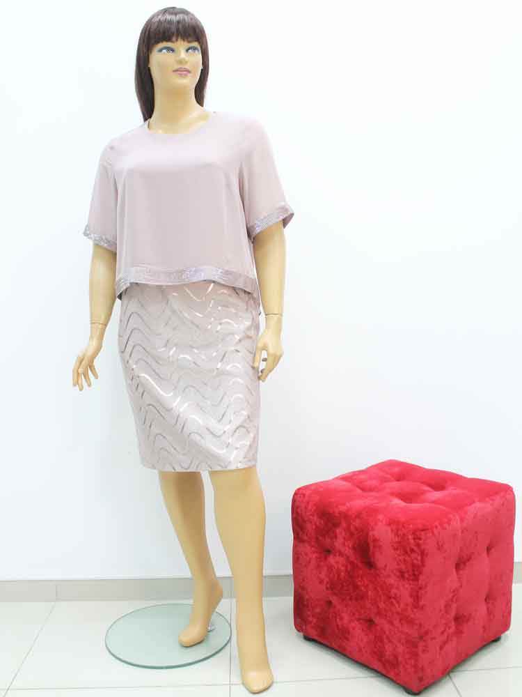 Платье трикотажное комбинированное с шифоном и бижутерия в комплекте большого размера, 2022. Магазин «Пышная Дама», Харьков.