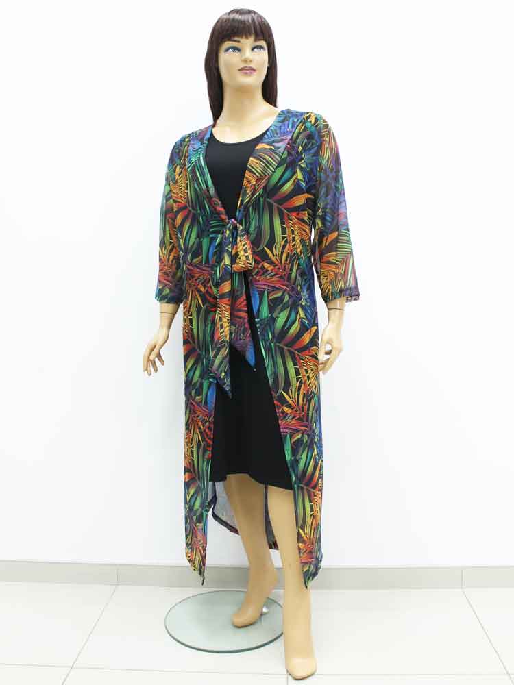 Платье двойка (платье и удлиненный жилет) трикотажное комбинированное с сеткой большого размера. Магазин «Пышная Дама», Харьков.
