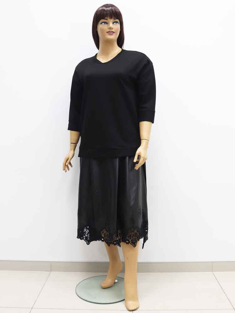 Платье двойка (платье с туникой) трикотажное комбинированное с экокожей большого размера, 2021. Магазин «Пышная Дама», Харьков.