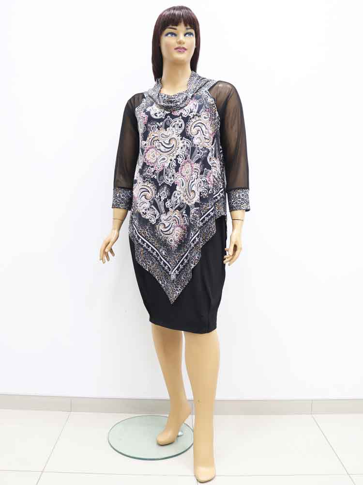Платье трикотажное стрейчевое с декоративным принтом и аппликацией большого размера. Магазин «Пышная Дама», Харьков.