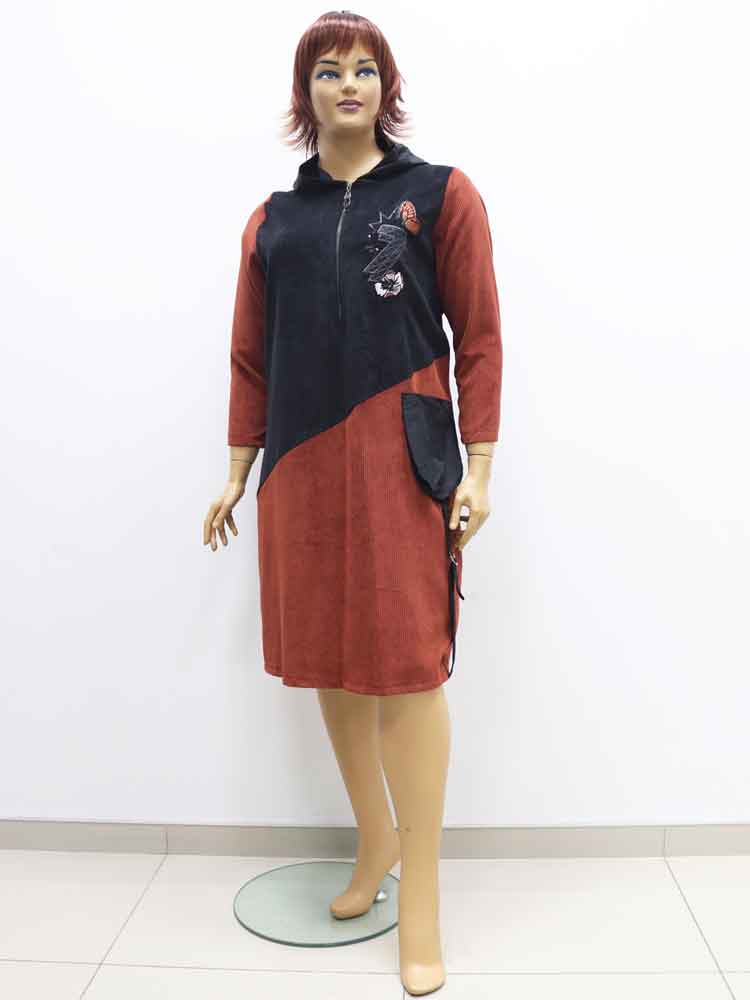Платье вельветовое комбинированное с аппликацией большого размера, 2023. Магазин «Пышная Дама», Харьков.