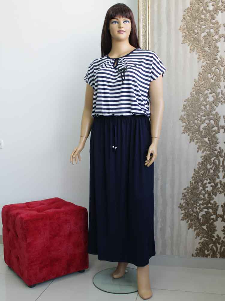 Платье трикотажное на резинке по талии код 110314 есть приблизительно от 60 до 68 по нашей размерной сетке. Объем бедер от 156 до 165 см. Платье стоит - 1560 грн.