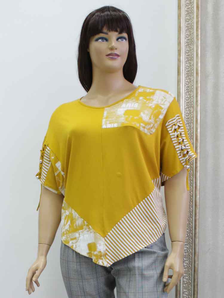 Здравствуйте. Блуза трикотажная (масло) стоит - 1350 грн. Размеры есть от 56 до 66 по нашей размерной сетке. Пять расцветок. Очень удачная модель. Хорошо сидит практически на любой женской фигуре.