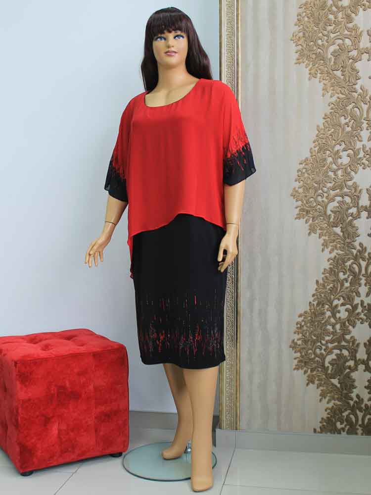 Платье трикотажное комбинированное с шифоном 110105 стоит - 2600 грн. Есть три размера 58, 60 и 62 (украинские).